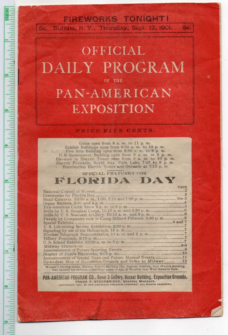 1901 Pan American Expo Florida Day Program Susan B Anthony Vintage AA112798