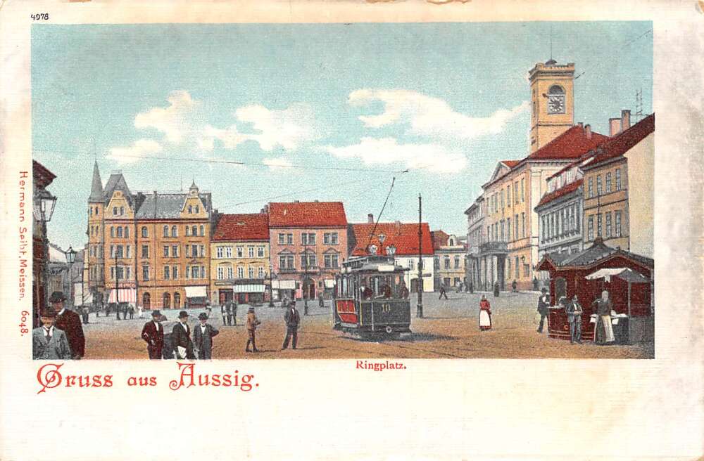 Aussig Usti nad Labem Czechoslovakia Kingplatz Trolley Gruss aus PC AA112808