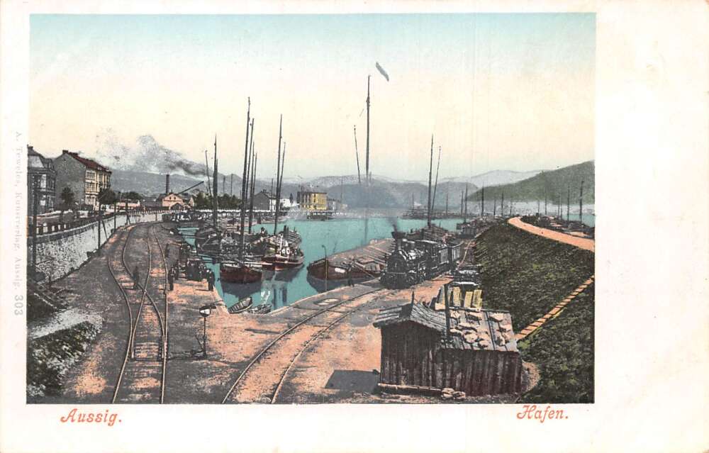 Aussig Usti nad Labem Czechoslovakia Hafen Harbor Scene Ships Postcard AA112809
