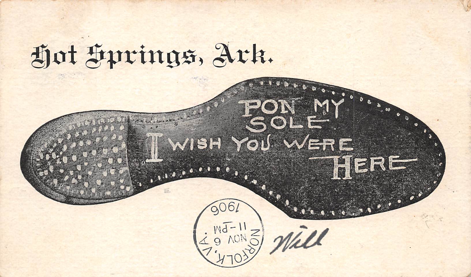 Hot Springs Arkansas Wish You Were Here, Undivided Back, Vintage Postcard U17055