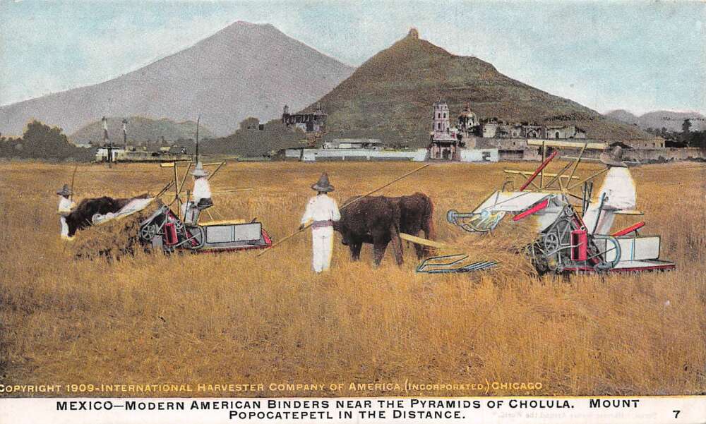 Mexico Modern Farming Scene Cholula Pyramids Mt Popocatepetl Postcard AA79952