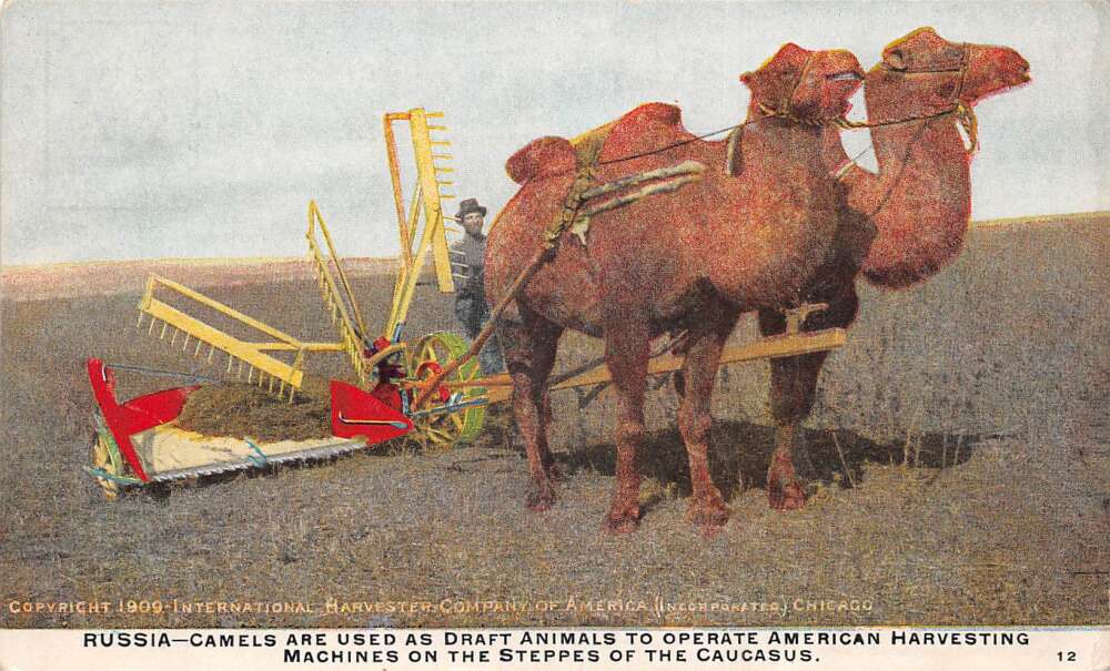 Russia Modern Farming Scene Camels Harvesting Vintage Postcard AA79953