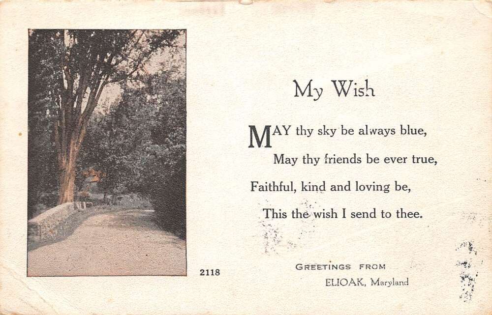 Elioak Maryland Greetings From Elioak, Poem, Color Lithograph, Vintage PC U19624