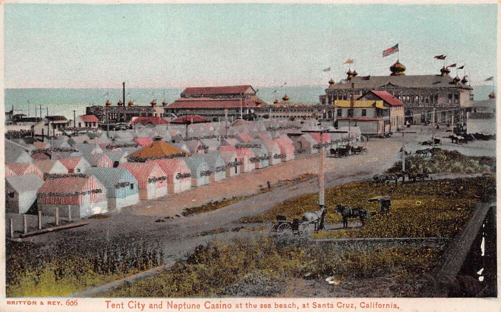 Santa Cruz California Tent City and Neptune Casino Glitter Postcard AA79060