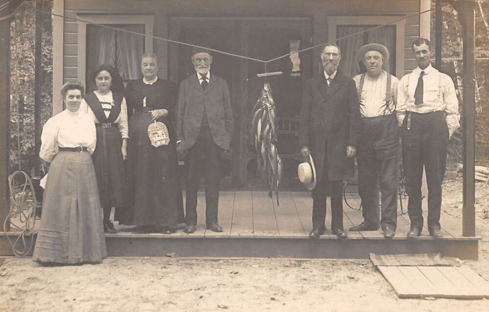 People by Cabin Fishermens Catch Real Photo Vintage Postcard AA108931
