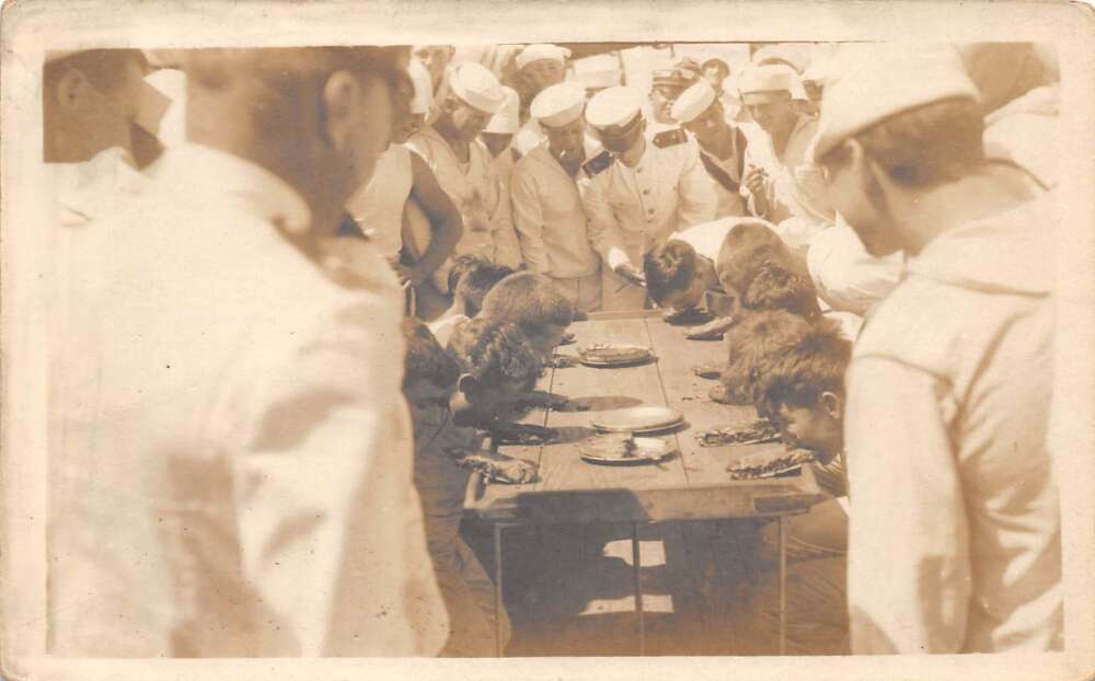 US Navy Pie Eating Contest Real Photo Vintage Postcard AA108932