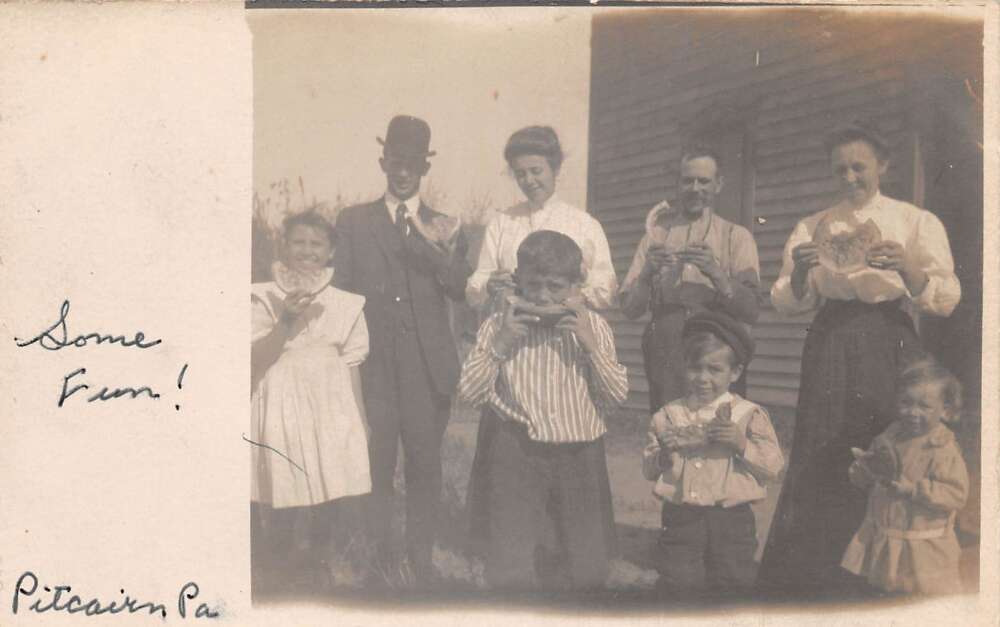 Pitcairn Pennslyvania Family eating Watermelon Real Photo Postcard AA108938