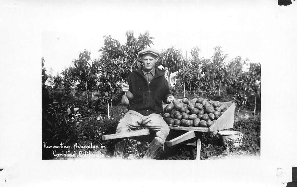 Carlsbad California Harvesting Avocados Real Photo Vintage Postcard AA108939