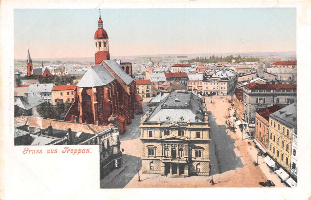 Troppau Opava Czechoslovakia Theatre and Church Gruss aus Postcard AA112811