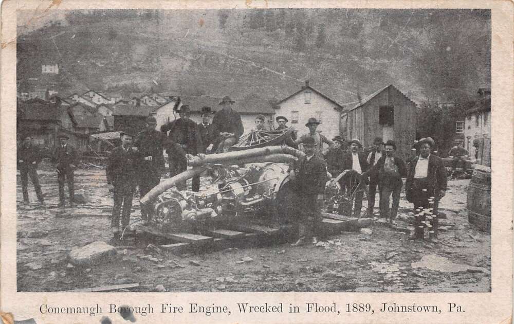 Johnstown Pennsylvania Fire Engine Wrecked after Flood Disaster PC AA112815