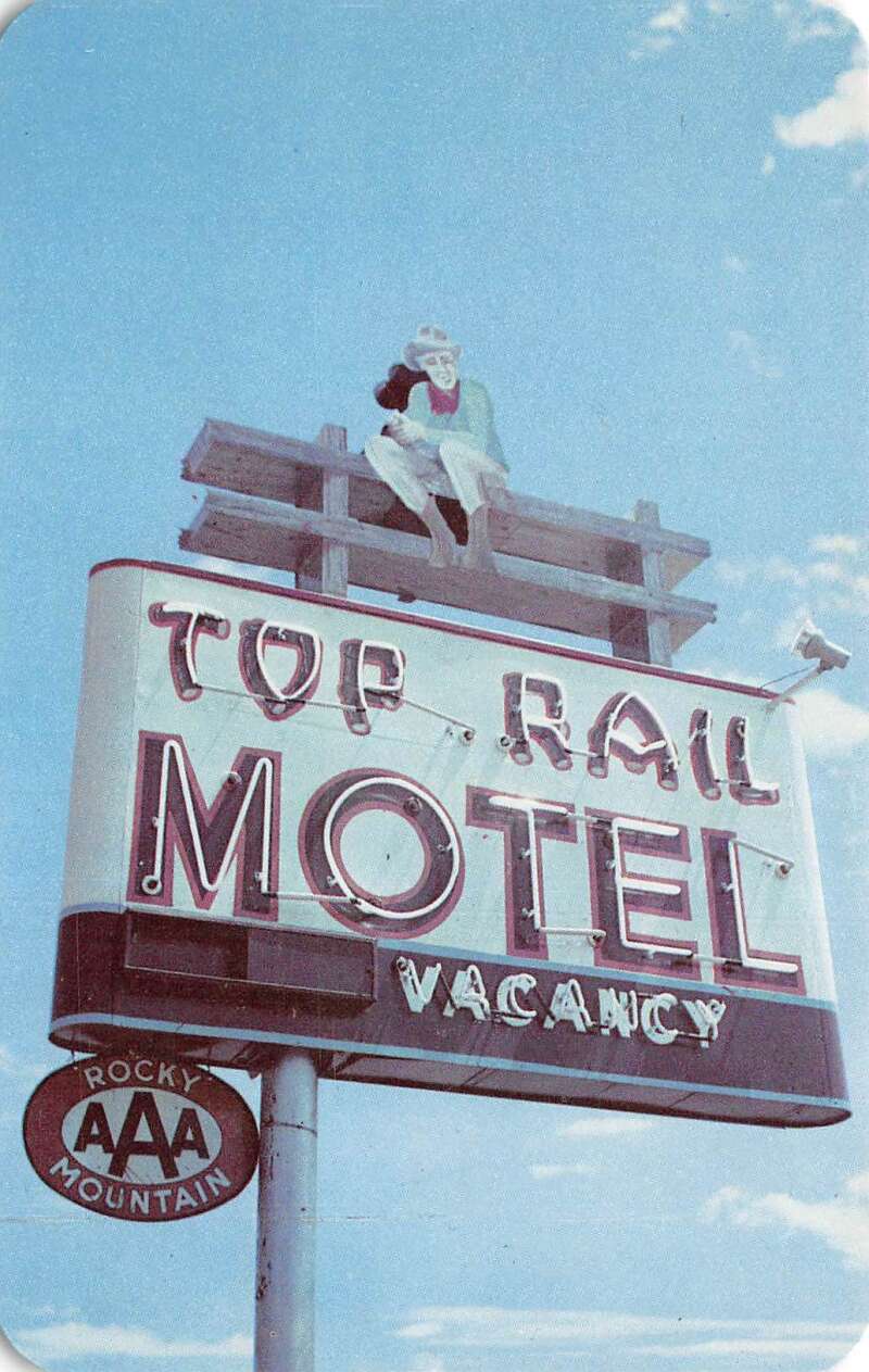 Aurora Colorado Top Rail Motel Cowboy Sign Vintage Postcard AA79062