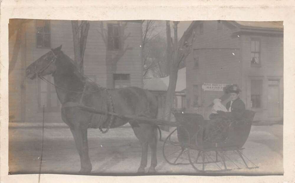 Horse Sleigh Rush Marble Works Real Photo Vintage Postcard AA108905