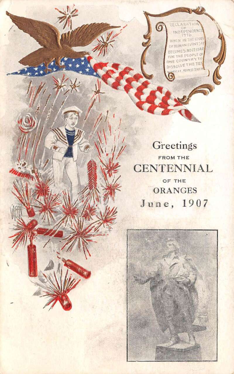 Orange New Jersey 1907 Centennial Patriotic Vintage Postcard AA108910
