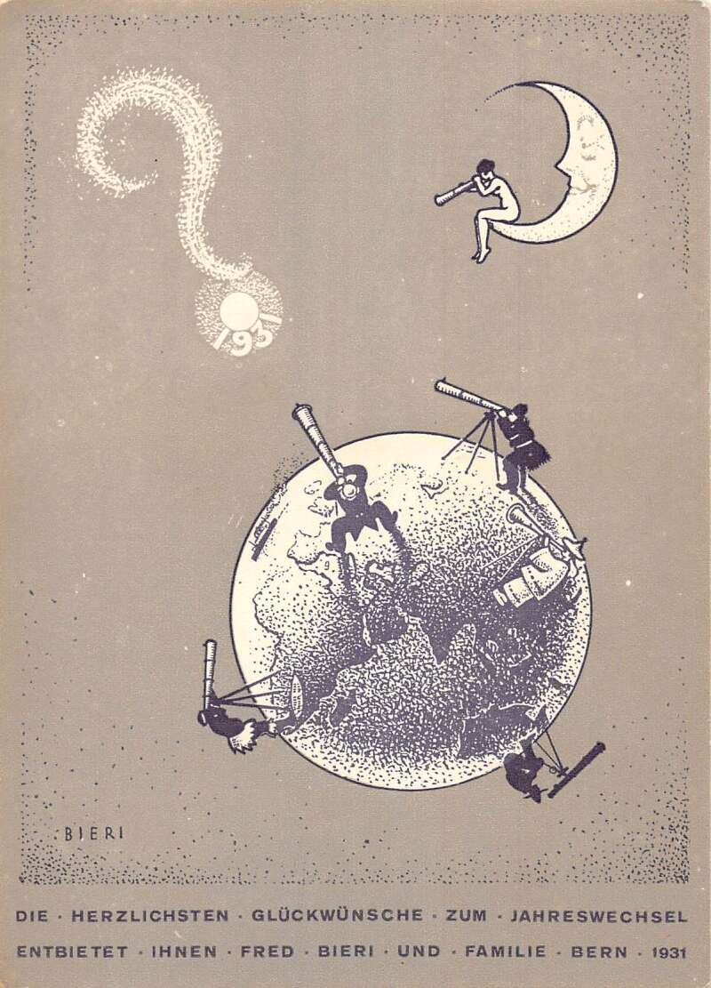 New Year Greetings 1931 Telescopes Fred Bieri Artist Signed Non PC AA108922