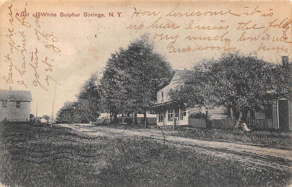 White Sulfur Springs New York A Section Of Town, B/W Lithograph Postcard U12596