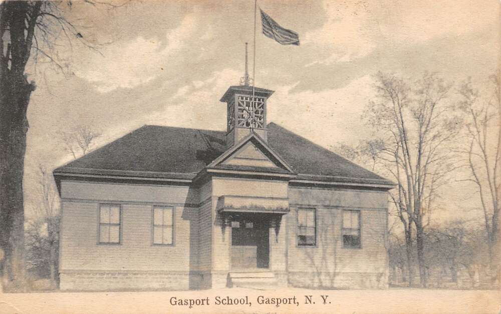 Gasport New York Gasport School, B/W Lithograph Vintage Postcard U12598