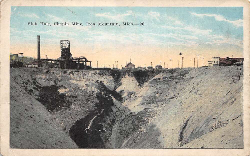 Iron Mountain Michigan Chapin Mine Sink Hole Vintage Postcard AA73472
