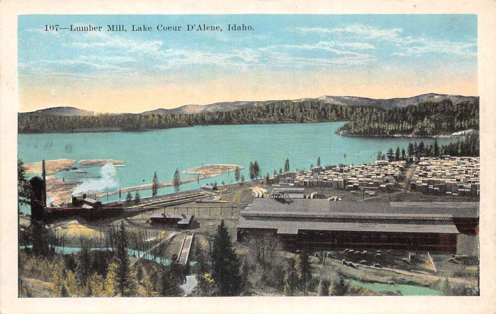Lake Couer d’Alene Idaho Lumber Mill Scenic View Vintage Postcard AA73479