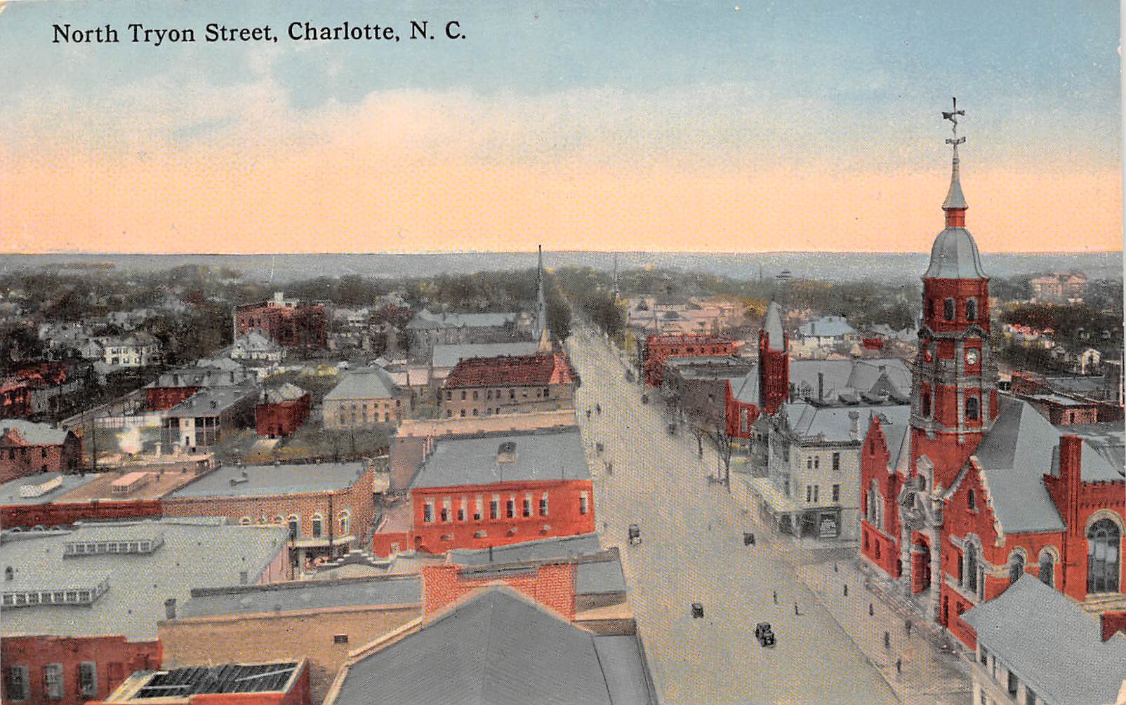 Charlotte North Carolina North Tyron St., Color Lithograph Vintage PC U12094