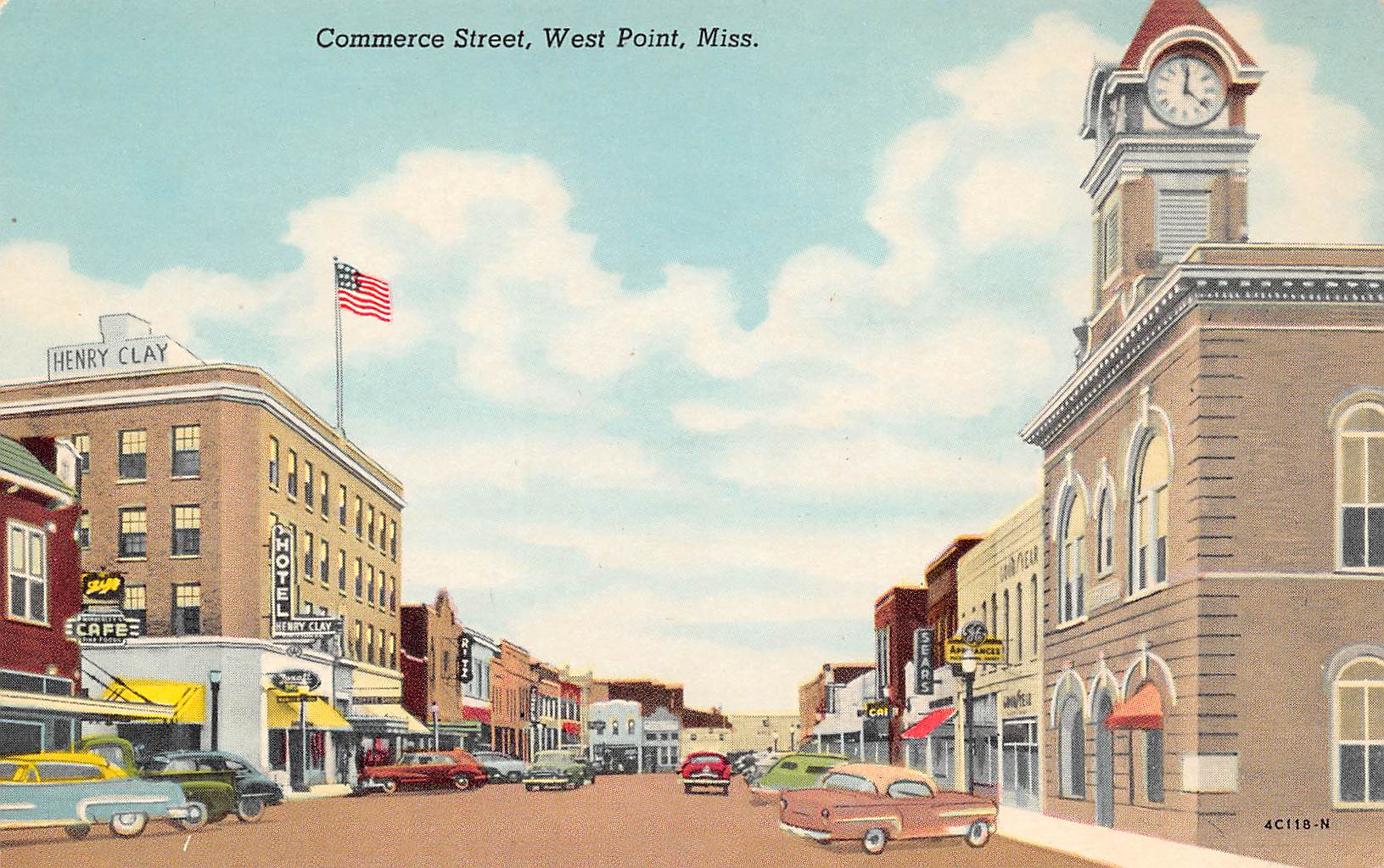 West Point Mississippi Commerce Street, Sears Store, Vintage Postcard U12096