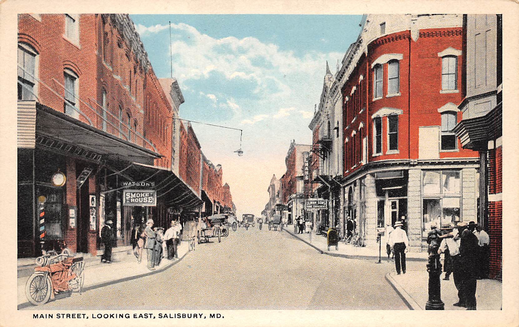 Salisbury Maryland Main St., Looking East, White Border Vintage Postcard U12097