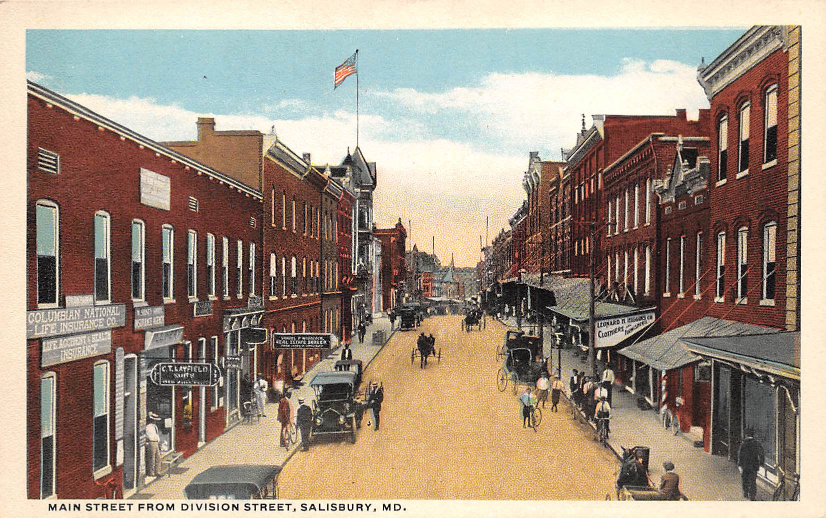 Salisbury Maryland Main St., From Division St., White Border Vintage PC U12098