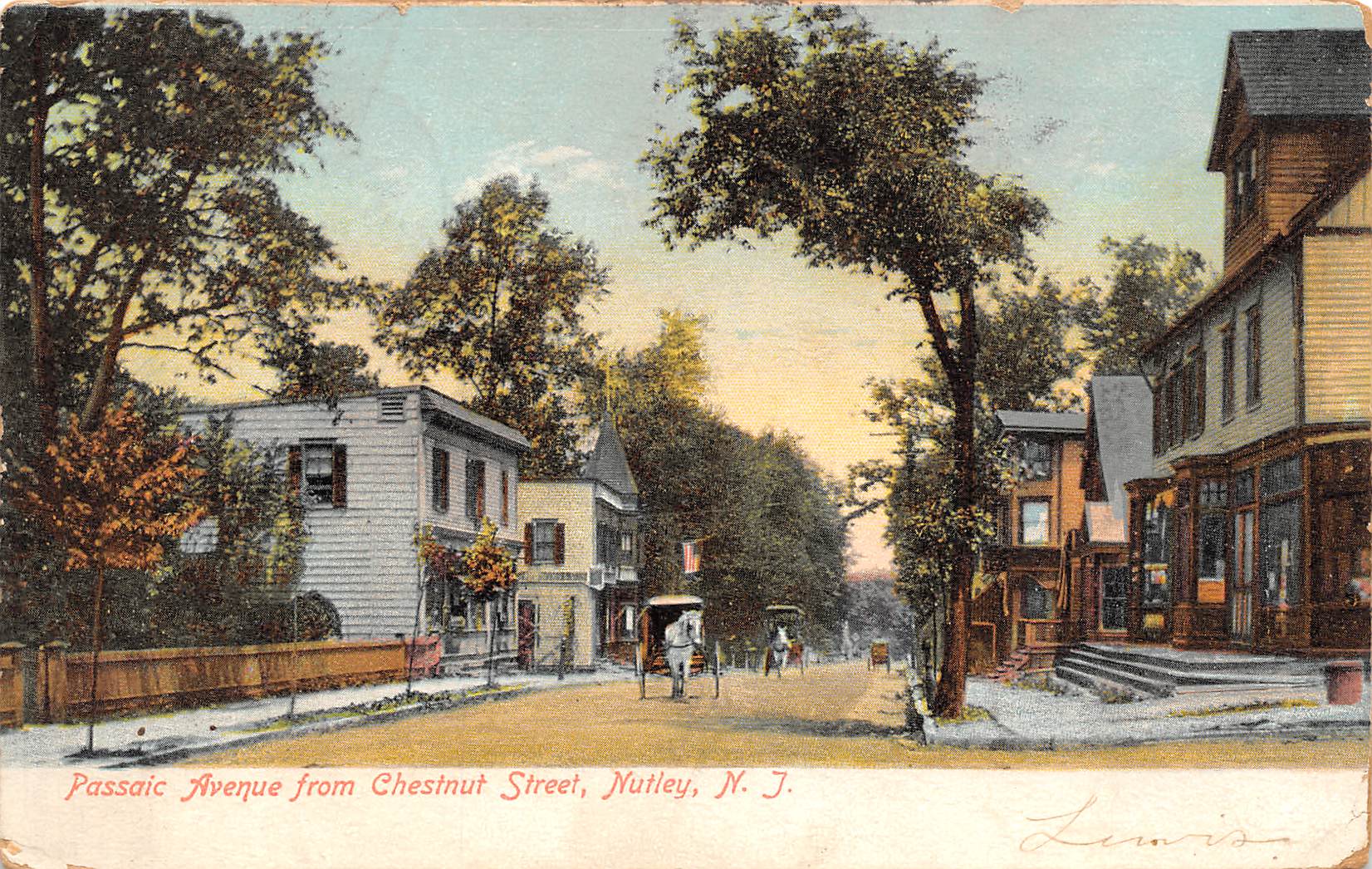 Nutley New Jersey Passaic Ave. From Chestnut St., Color Lithograph PC U12107