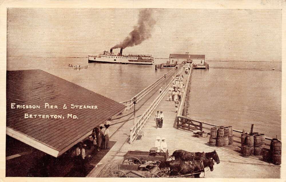 Betterton Maryland Ericsson Pier & Steamer, B/W Lithograph, PC U19556