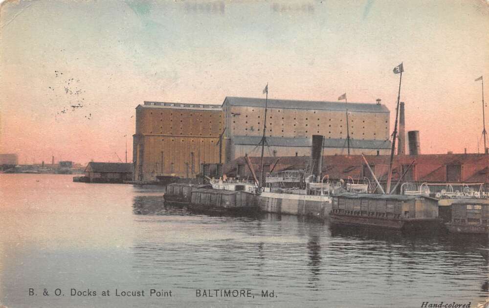 Baltimore Maryland B. & O. Docks, Locust Point, Hand Colored, PC U19566