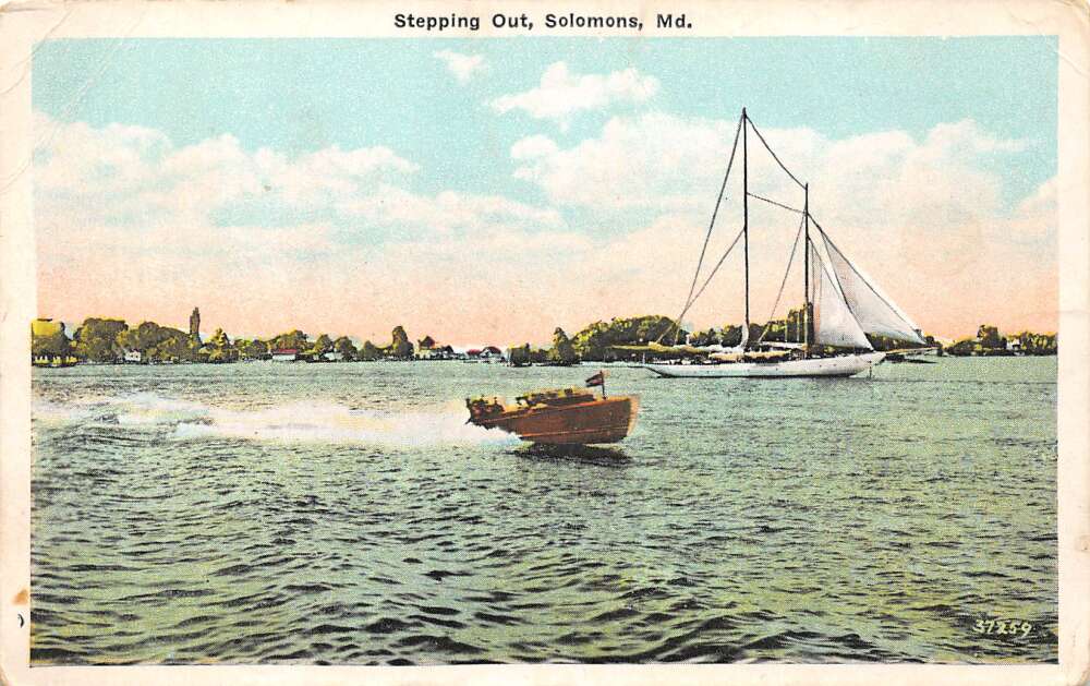 Solomons Maryland Sailing Scene, White Border, Vintage Postcard U19573