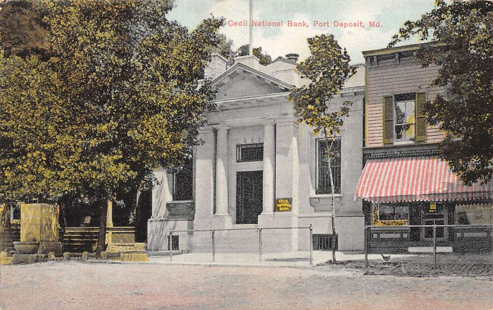 Port Deposit Maryland Cecil National Bank, Color Lithograph, Vintage PC U19555