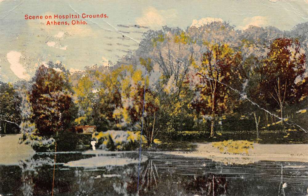 Athens Ohio Scene On Hospital Grounds, Color Lithograph, Vintage Postcard U11981