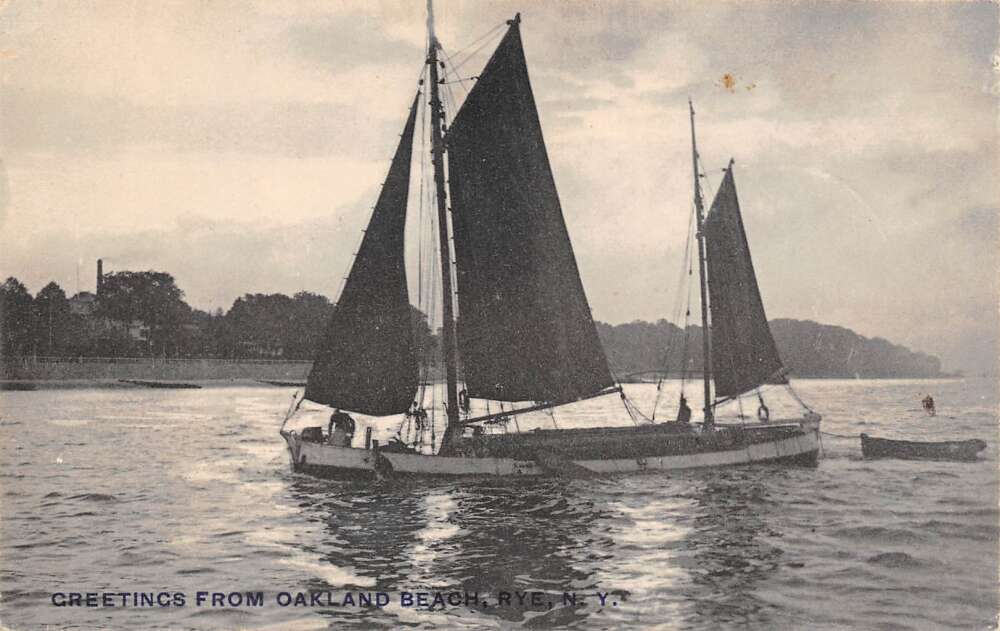 Rye New York Greetings From Oakland Beach, Sailing Scene, Vintage PC U11985
