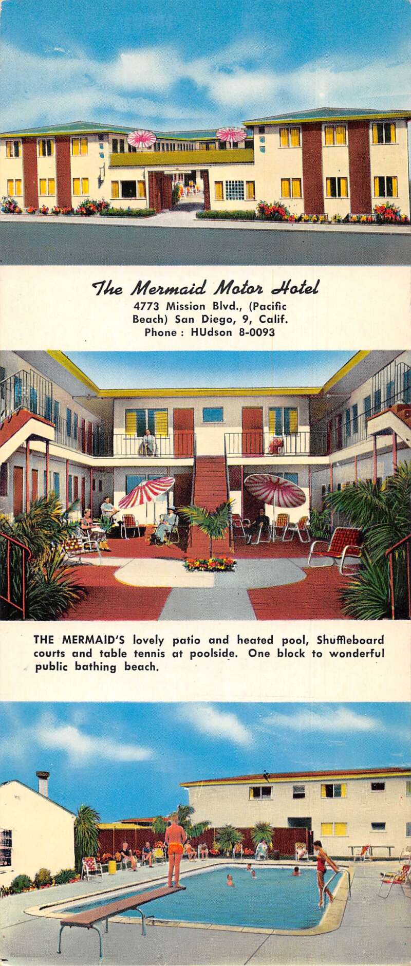 San Diego California The Mermaid Motor Hotel Extra Wide Vintage Postcard AA85526