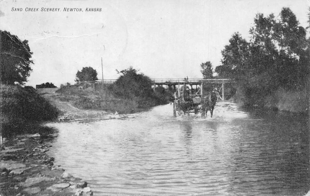 Newton Kansas Sand Creek Scenery, B/W Lithograph, Vintage Postcard U26969