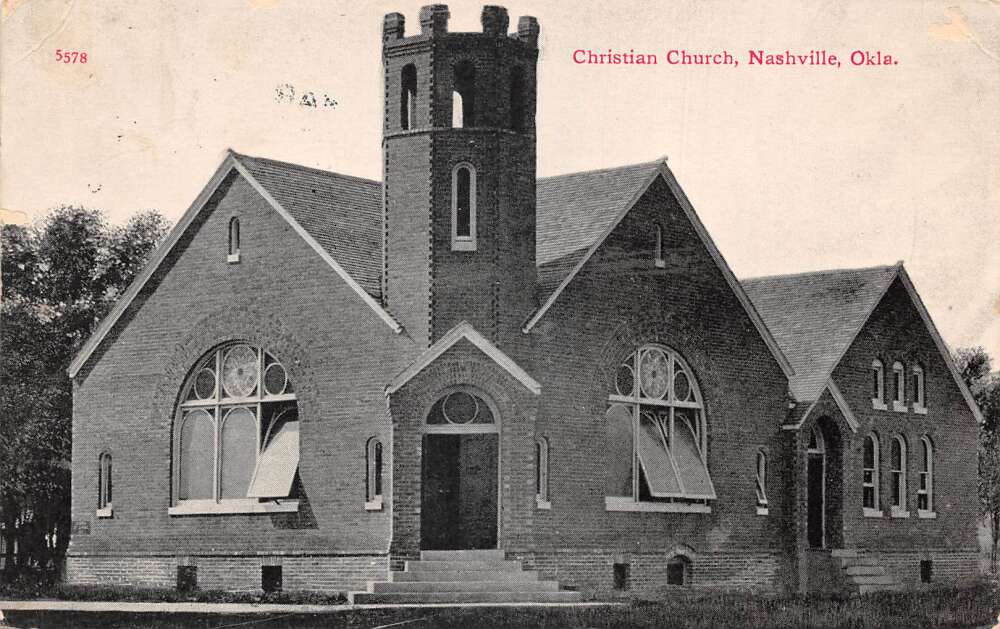Nashville Oklahoma Christian Church, B/W Lithograph, Vintage Postcard U26971