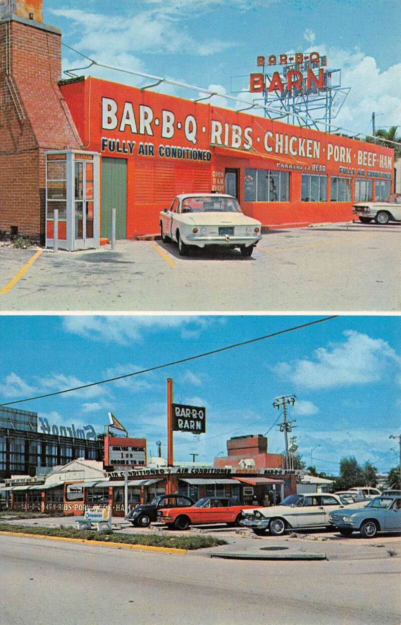 Miami Florida Bar-B-Q Barn, Multi-View Chrome Vintage Postcard U26974