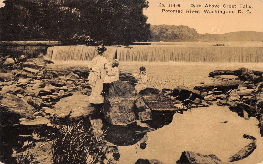 Washington D.C. Dam Above Great Falls, B/W Lithograph, Vintage Postcard U26977