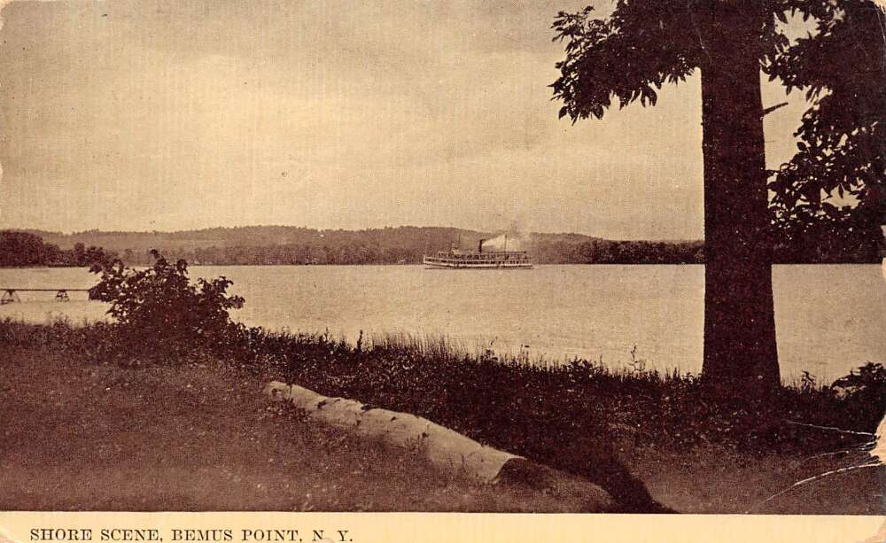 Bemus Point New York Shore Scene, B/W Lithograph Vintage Postcard U15558