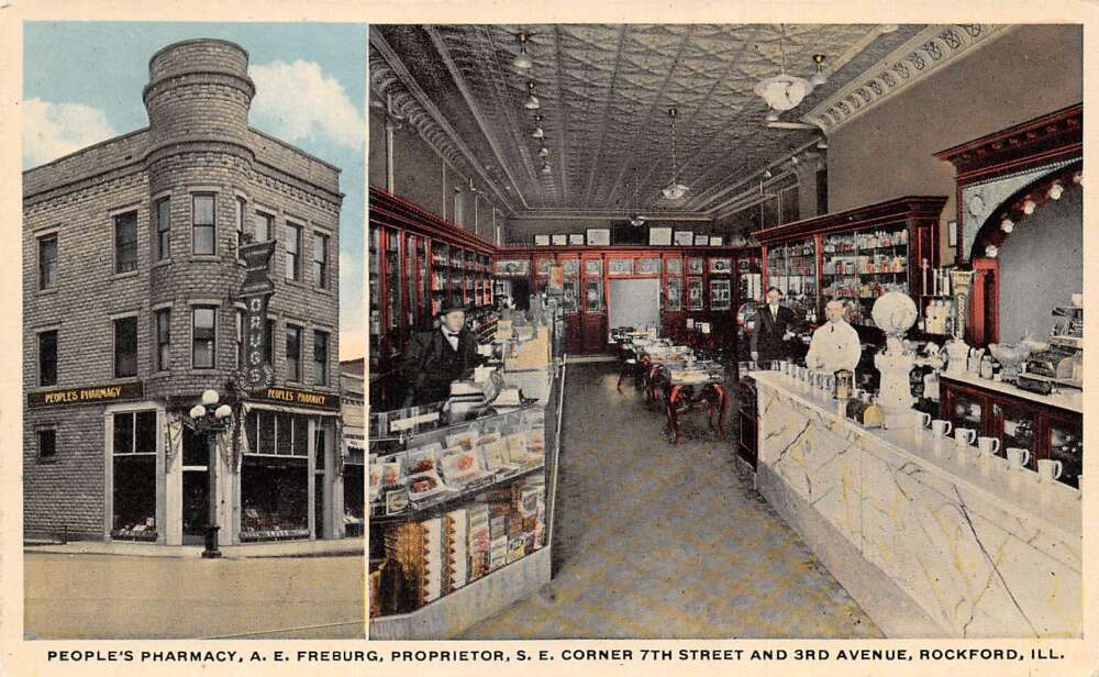 Rockford Illinois People’s Pharmacy Vintage Postcard AA79607