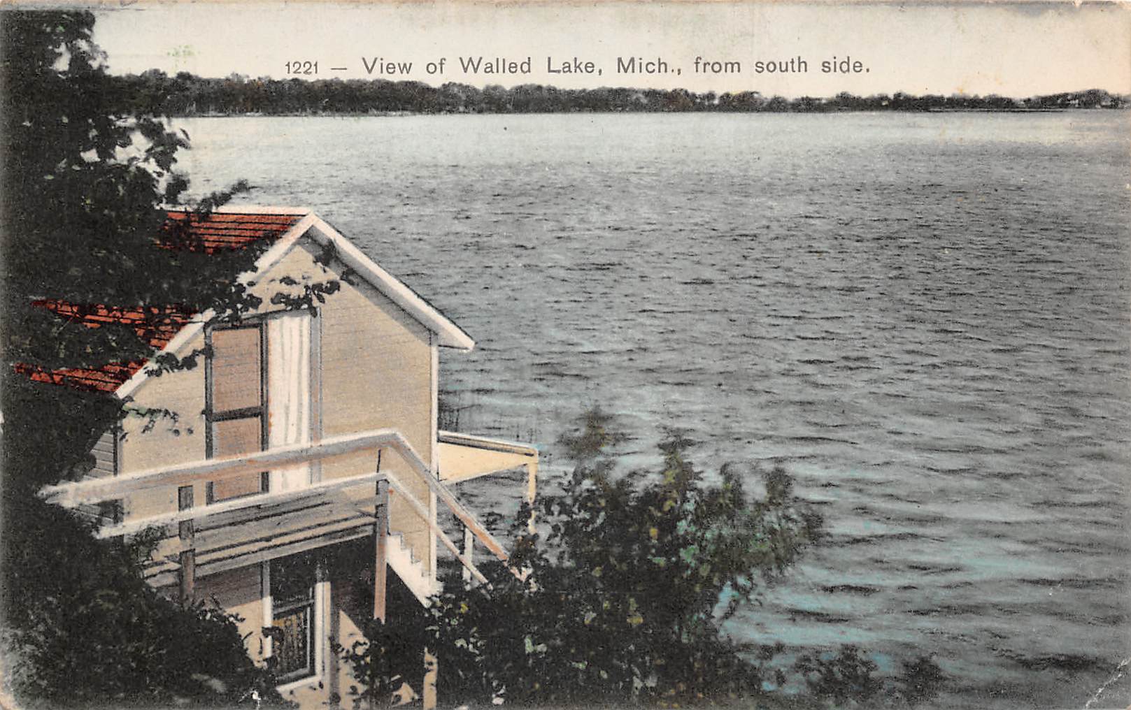 Walled Lake Michigan Lake View, From South Side, Color Lithograph PC U12152