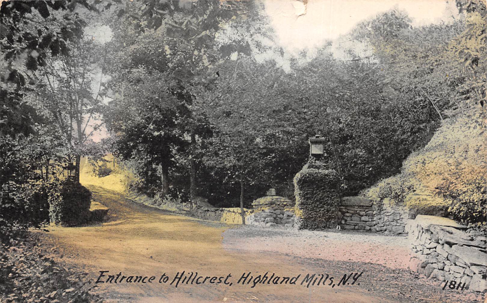 Highland Mills New York Entrance to Hillcrest, Color Lithograph Postcard U12161