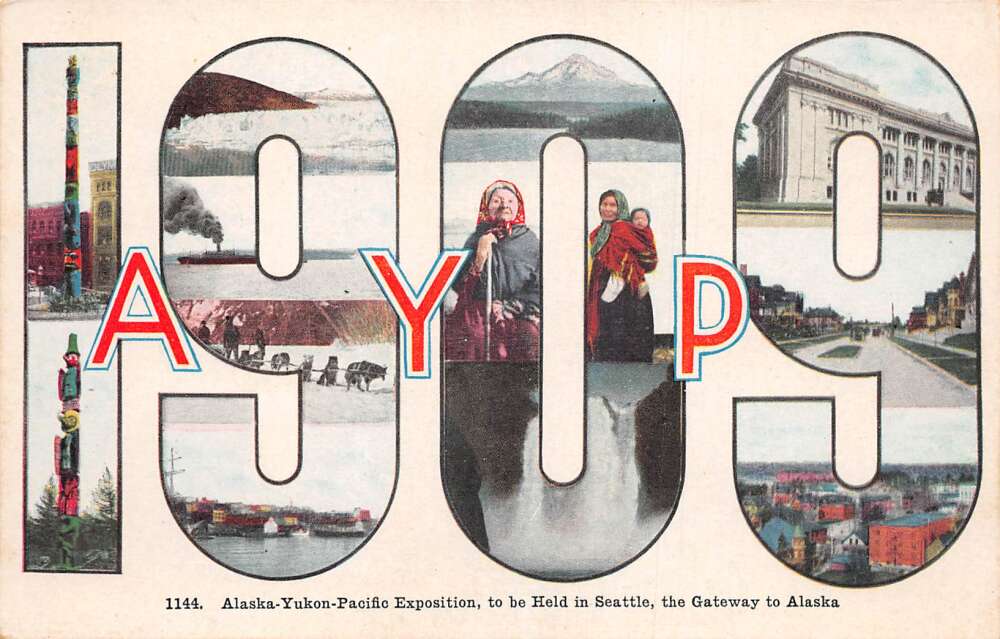 1909 Alaska Yukon Pacific Expo Year Date Greetings Vintage Postcard AA74284