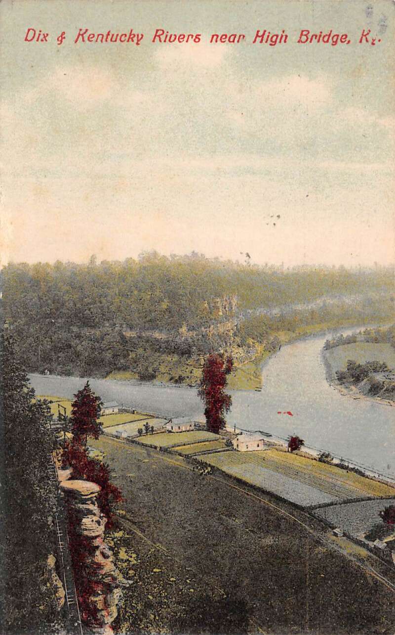High Bridge Kentucky Dix and Kentucky Rivers Birds Eye View Postcard AA74291