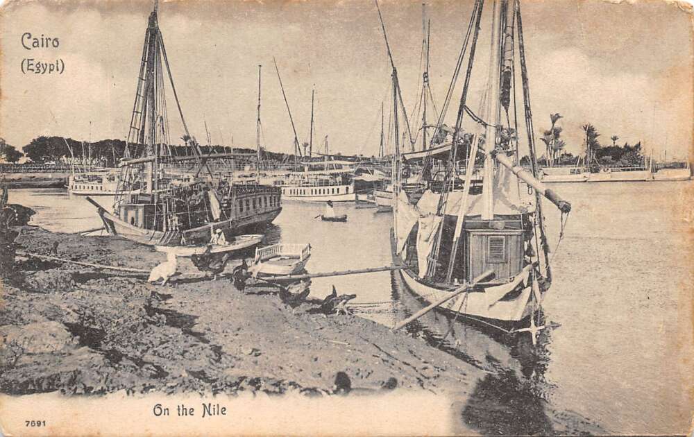Cairo Egypt On the Nile Ships Scenic View Vintage Postcard AA73531
