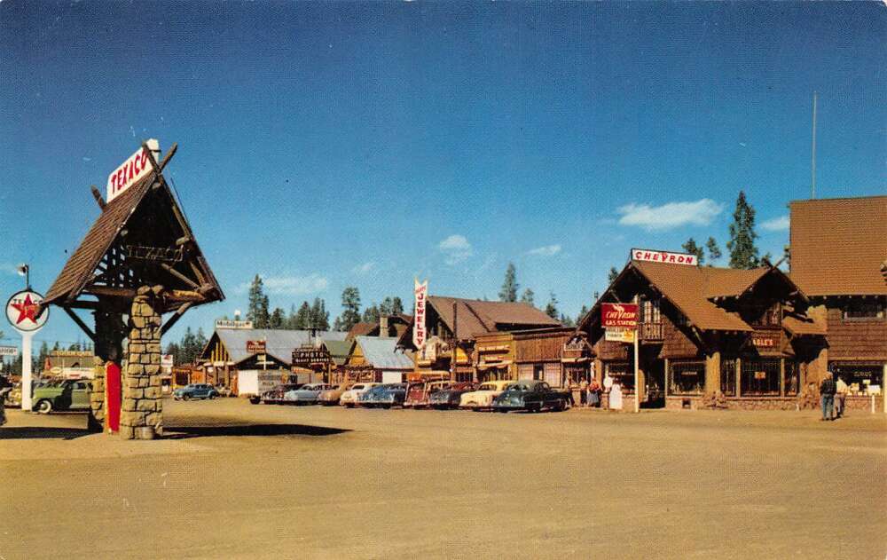West Yellowstone Montana Hwy 91 Gas Stations Texaco Chevron Postcard AA111567