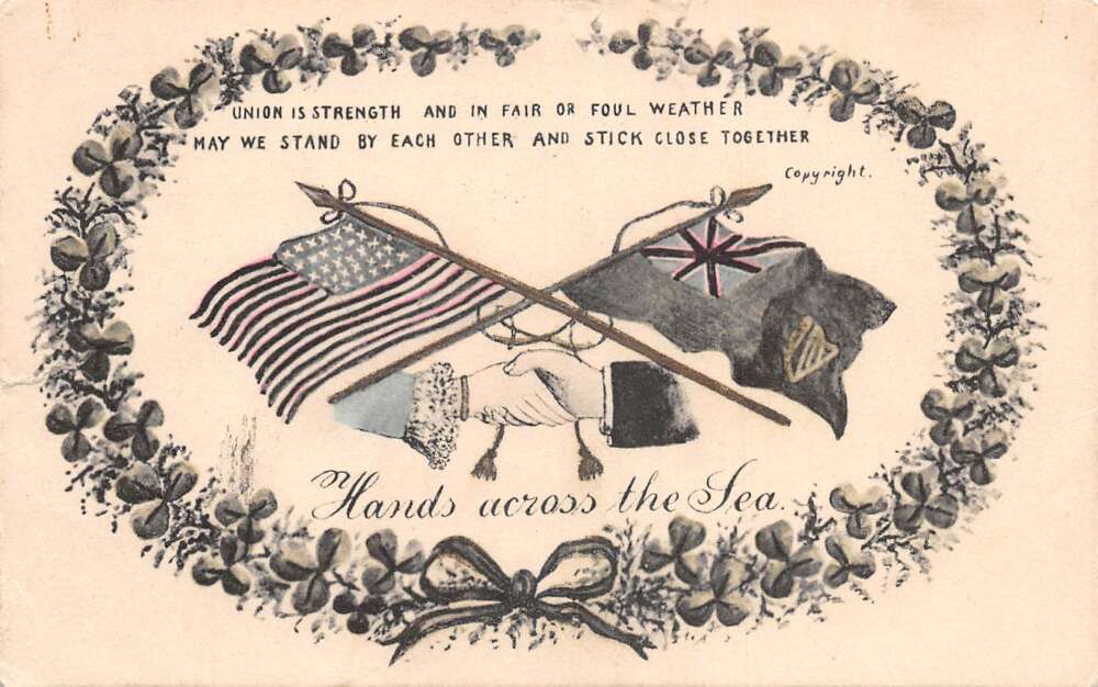 Greetings Hands Across the Sea US and UK Flags Vintage Postcard AA105682