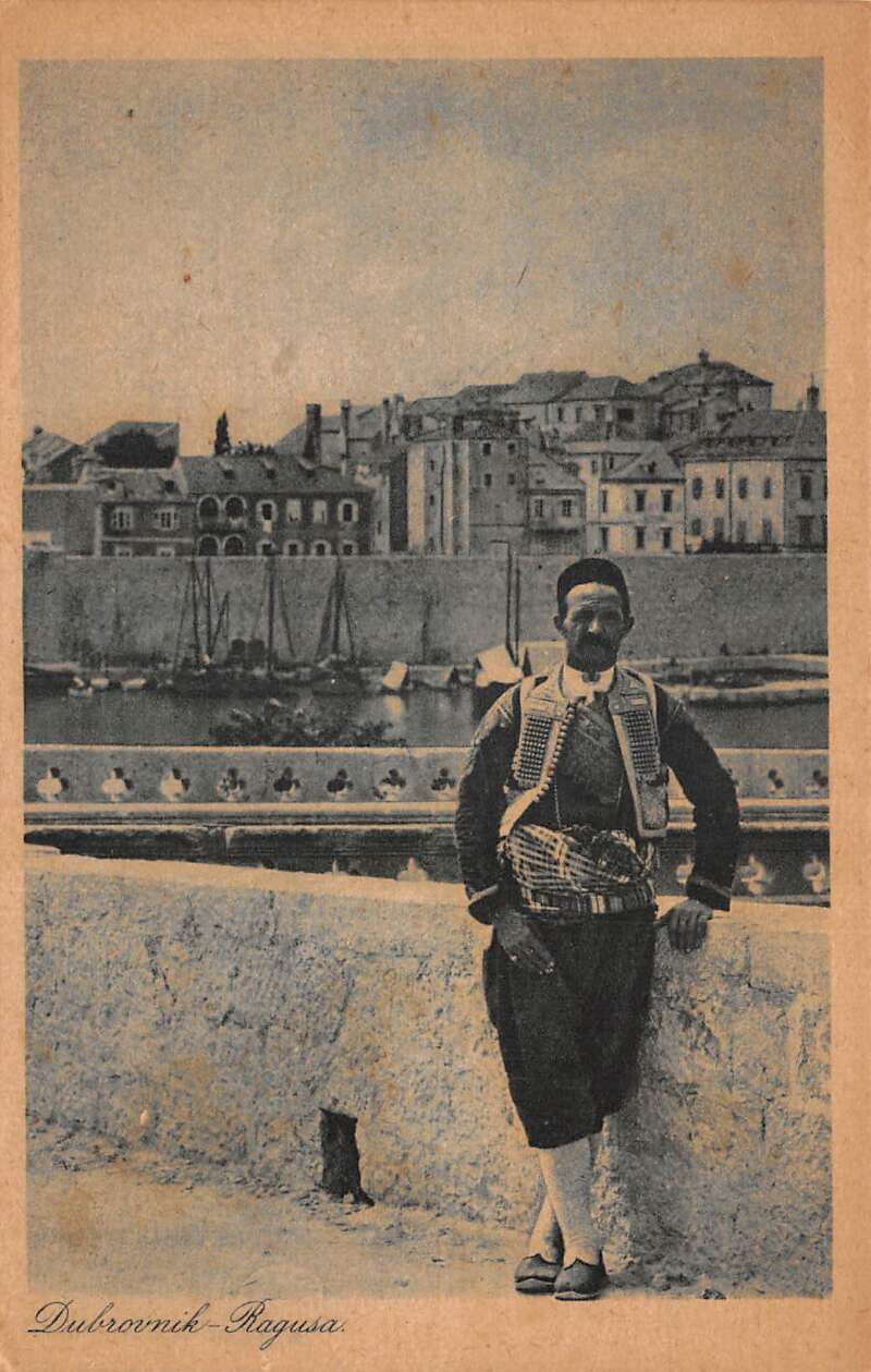 Dubrovnik Ragusa Croatia Man Posing near Harbor Vintage Postcard AA105689