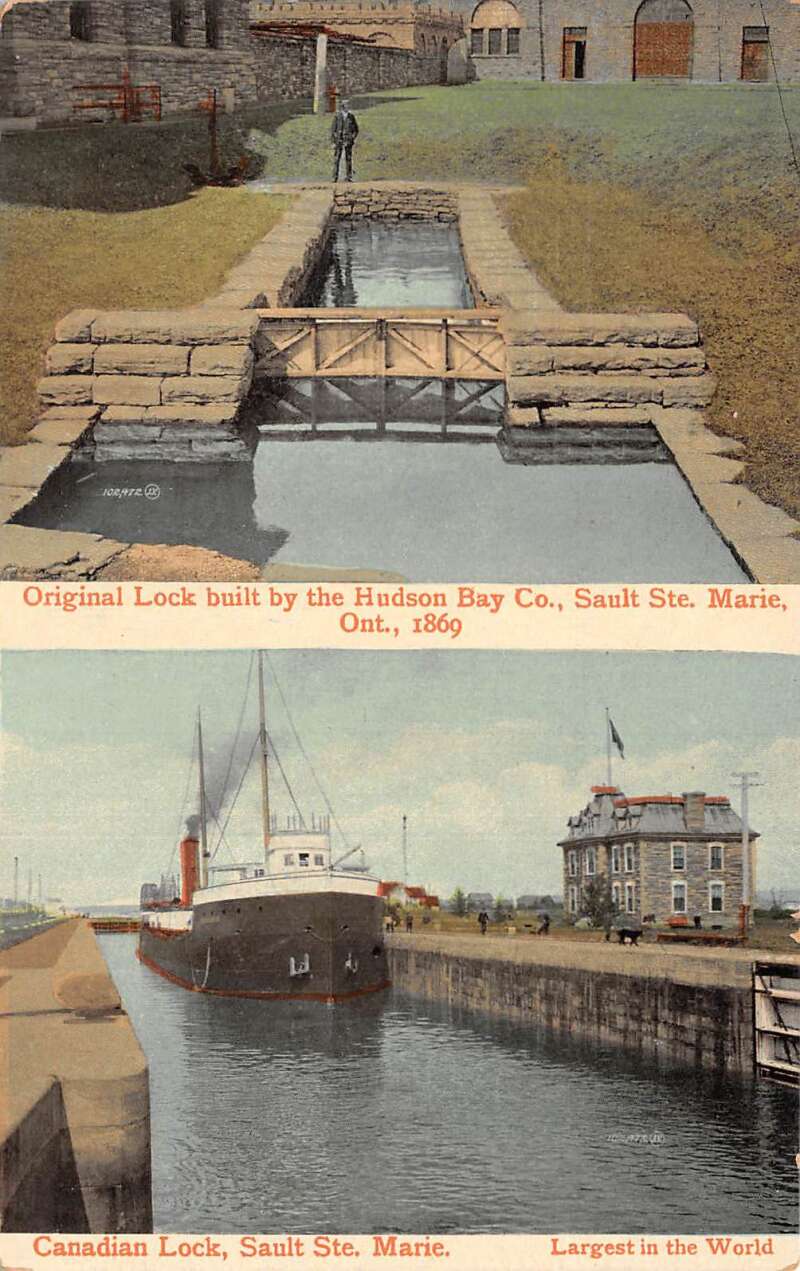 Sault Ste Marie Ontario Canada Hudson Bay Ship Locks Vintage Postcard AA105667