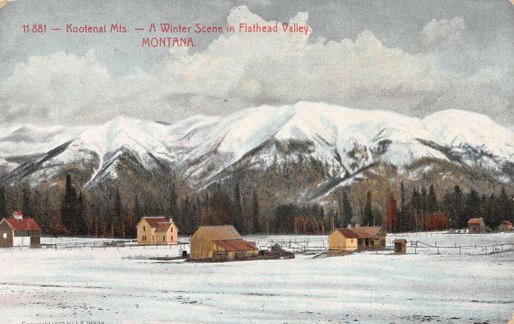 Flathead Valley Montana Kootenal Mountains Winter Scenic View Postcard AA105675